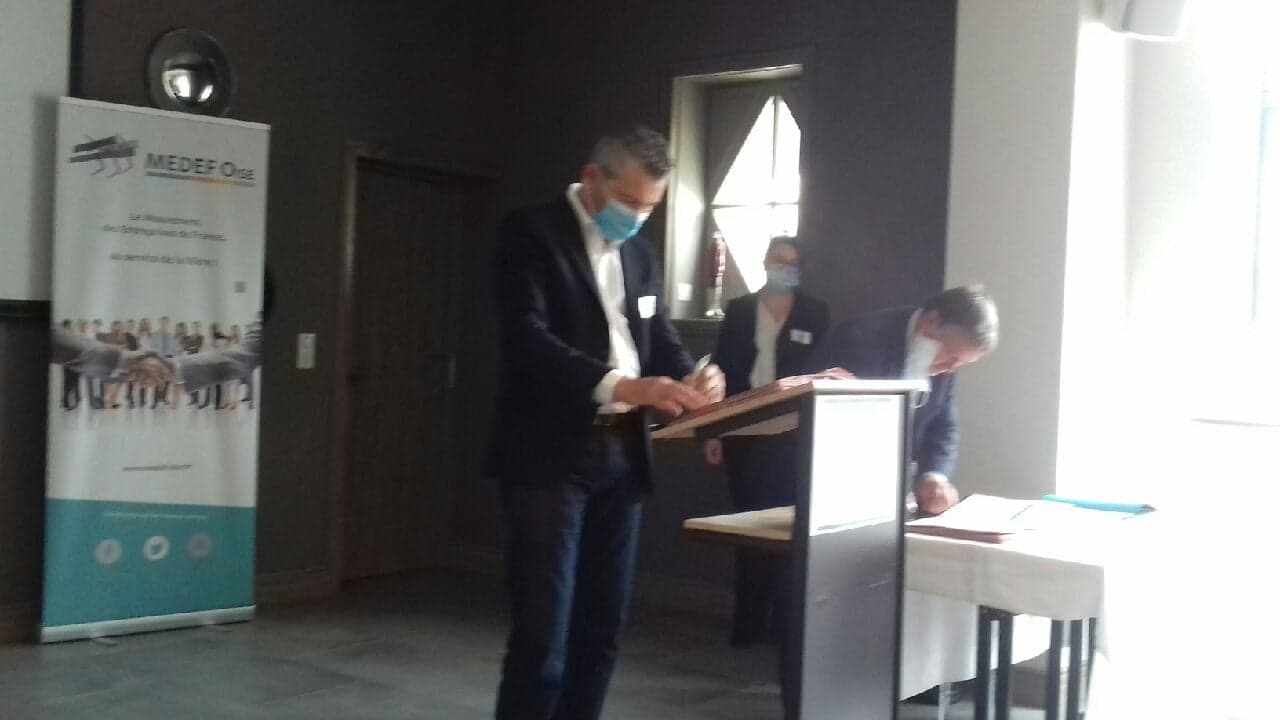 La signature de la convention organisée lors de l’Assemblée Générale du Medef de l’Oise s’est faite en présence de Mme la Préfète Mme Corinne ORZECHOWSKI.