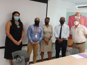 De g à d : Frédérique BUERNET-SOTON (Conseillère Emploi-Formation Afdas Antilles-Guyane, Aymeric CHEMIN (Chargé d'études et de développement Agefiph), Sandra GANE (Déléguée régionale Afdas Antilles-Guyane), Jean-Max CHARLERY-ADELE (Directeur adjoint DEETS, pôle Entreprises, emploi, économie), Dominique ALLANET (Délégué régional Agefiph Antilles-Guyane)